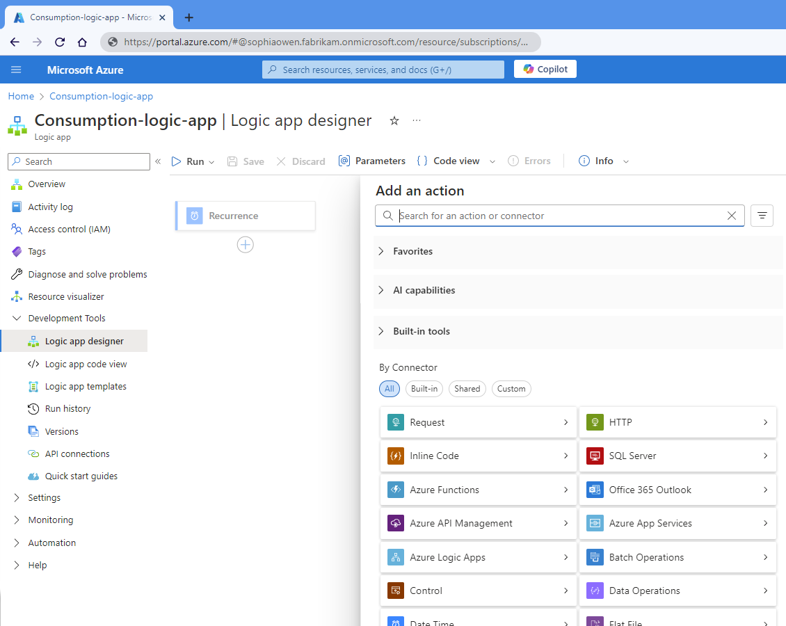 Add a trigger or action to build a workflow in Azure Logic Apps