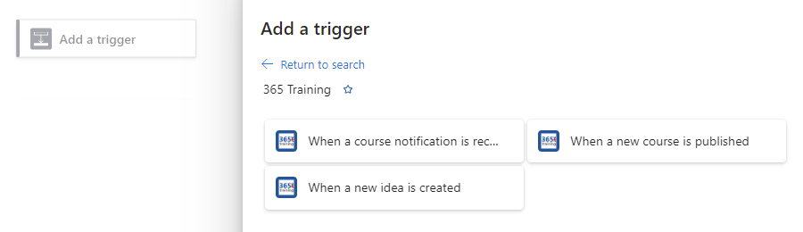 The following example shows the selected 365 Training connector and its triggers: