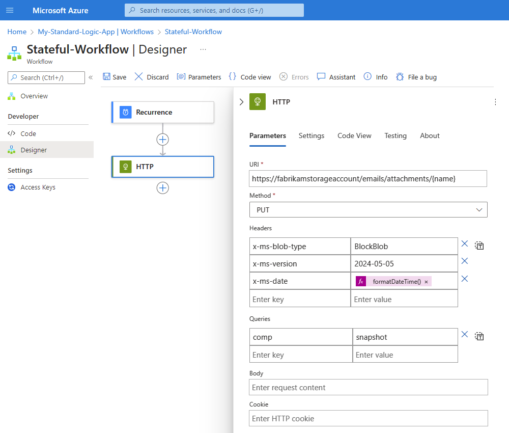 Note: HTTP operations can authenticate connections to Azure Storage accounts behind Azure firewalls with the system-assigned identity. However, HTTP operations don't support the user-assigned identity for authenticating the same connections.