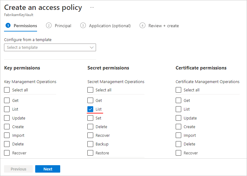 For example, for Azure Key Vault, add the identity to the key vault's access policies. For Azure Blob Storage, assign the necessary role for the identity to the storage account.