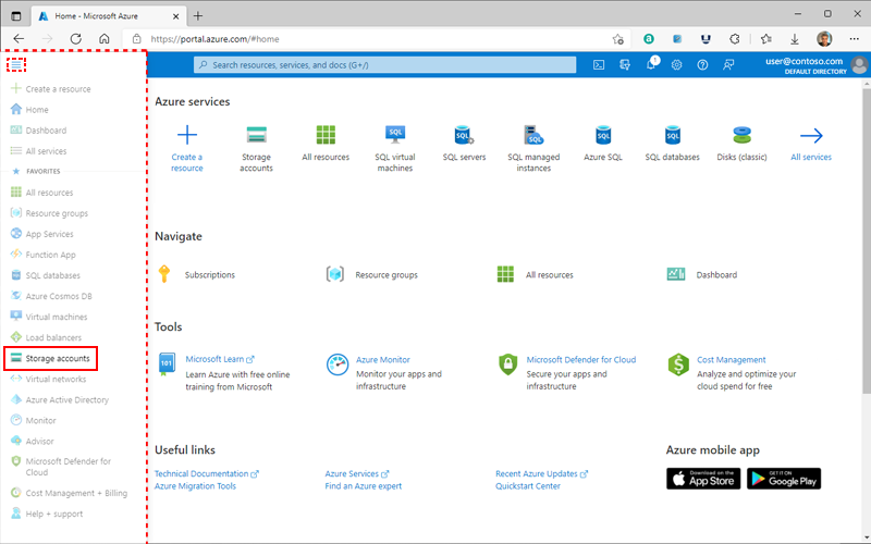 From the left portal menu, select Storage accounts to display a list of your storage accounts. If the portal menu isn't visible, select the menu button to toggle it on.