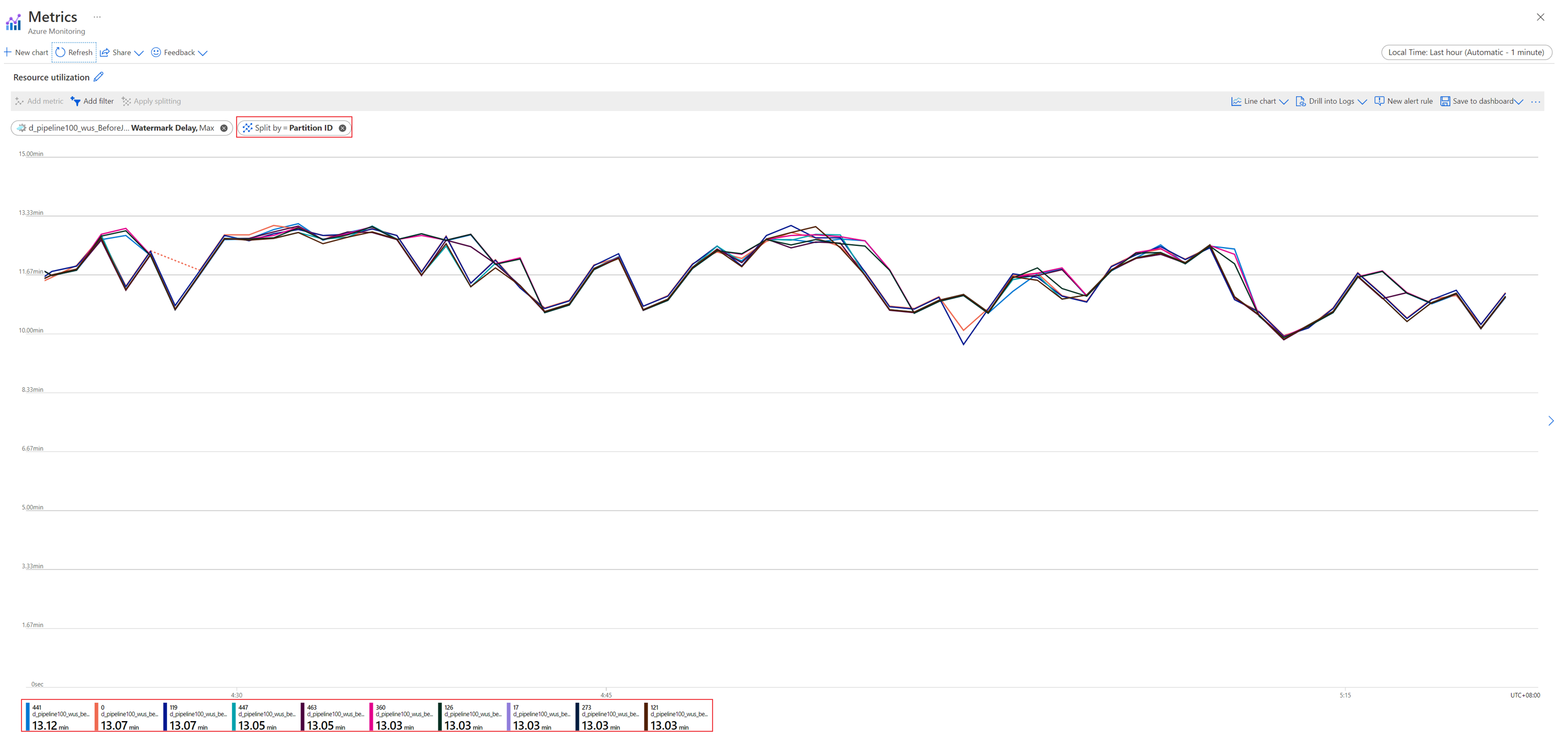 The Partition ID dimension is available for filtering and splitting the following metrics:
