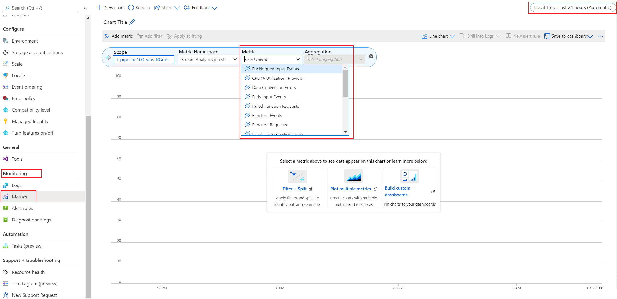 Azure Stream Analytics provides plenty of metrics that you can use to monitor and troubleshoot your query and job performance. You can view data from these metrics on the Overview page of the Azure portal, in the Monitoring section.
