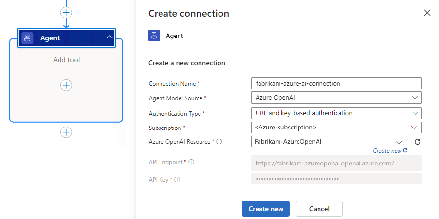 While Consumption agentic workflows are automatically set up with a model to use, Standard agentic workflows require that you set up a connection to the model for the agent to use: