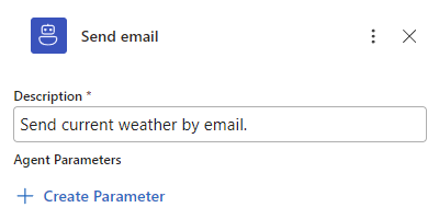 Except for the different agent parameters to set up for the Send an email (V2) action, the steps in this section are nearly the same as Create agent parameters for the 'Get current weather' action.