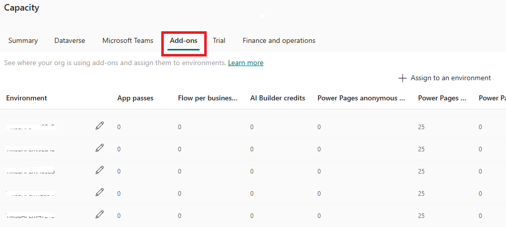 Като администратор трябва да разпределите Power Apps планове за приложения в центъра за администриране Power Platform . След като плановете за приложение са разпределени към среда, те се присвояват, когато приложенията се споделят с потребители в средата.
