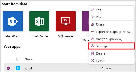 Изберете приложението в Power Apps.
