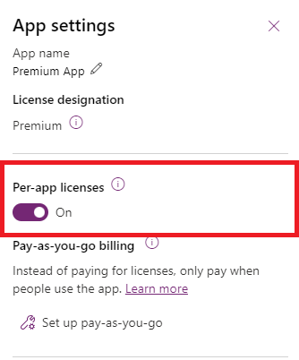 - Закупуване на планове за Power Apps на приложение