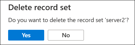 Verify that the name matches the record set that you want to delete, and then select Yes.
