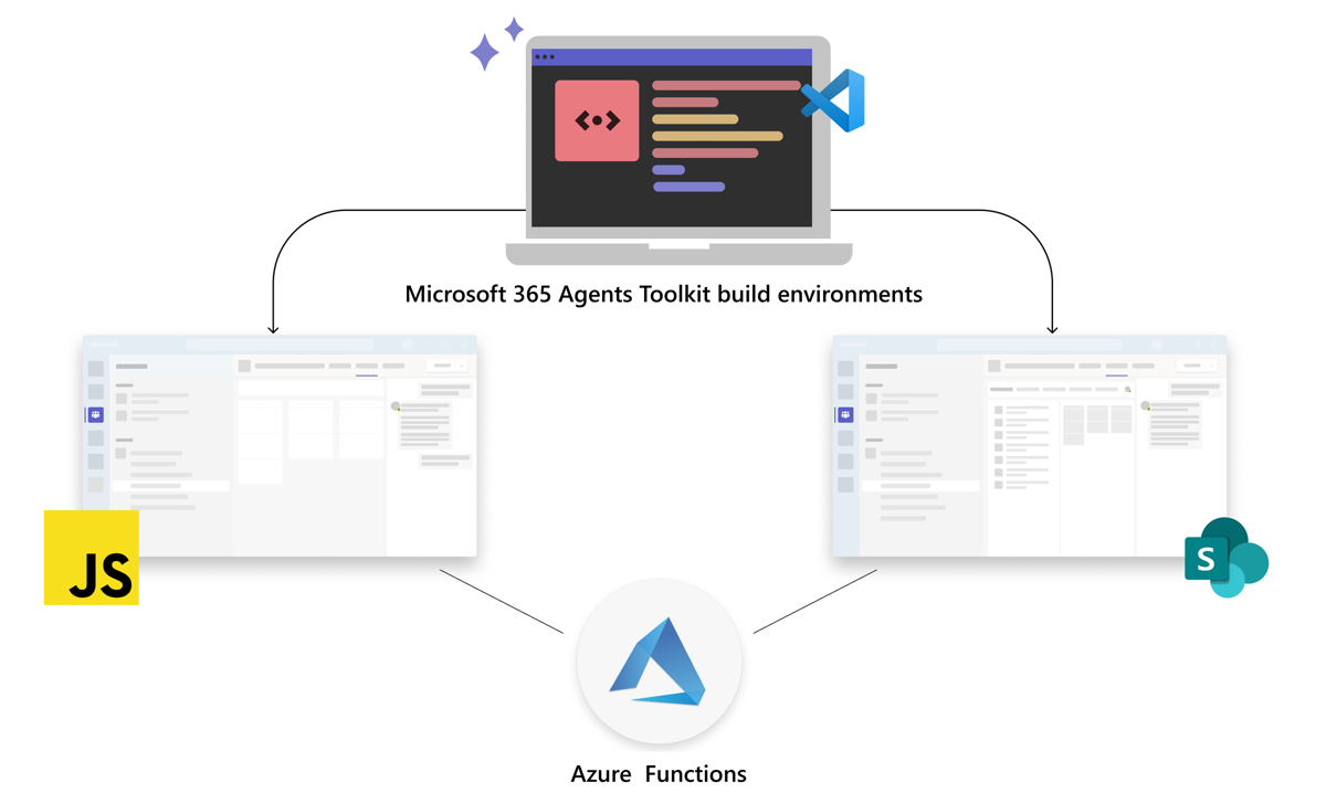 Microsoft 365 Agents Toolkit (previously known as Teams Toolkit) supports different build environments for creating apps. It helps to integrate Azure Functions capabilities and cloud services in the Microsoft Teams app that you've built.
