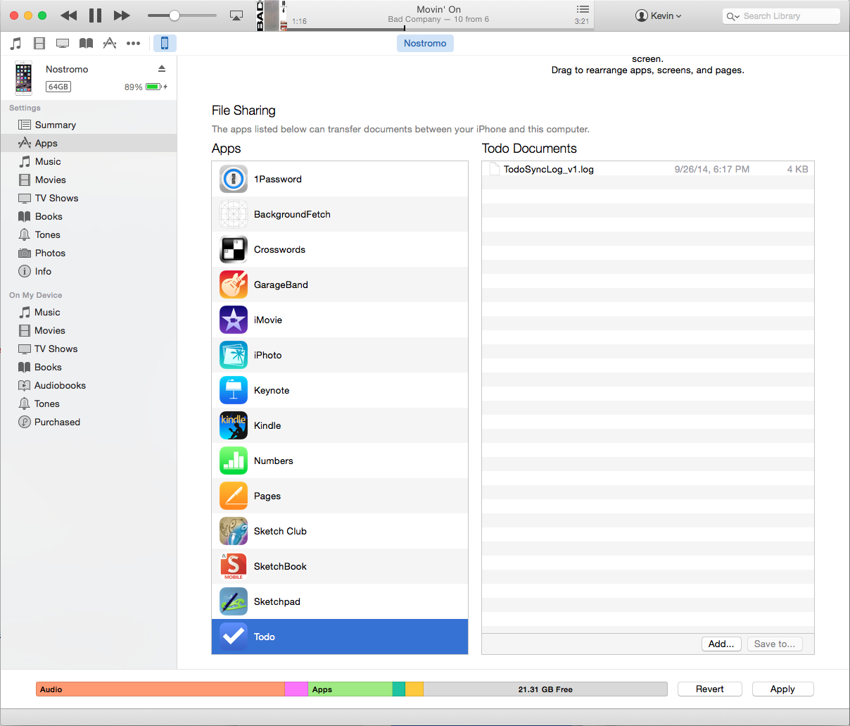 creating an Application that supports iTunes sharing (UIFileSharingEnabled) entry in the Source view, as shown here: