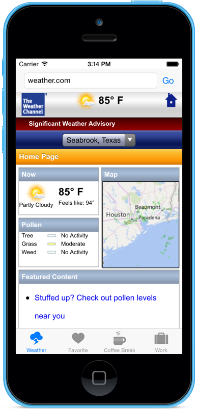 An example of using Handoff in a Xamarin.iOS app is the MonkeyBrowser sample app. The app has four tabs that the user can use to browse the web, each with a given activity type: Weather, Favorite, Coffee Break and Work.