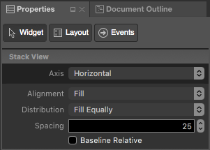 - Distribution – Controls how the subviews are sized within the Stack View.