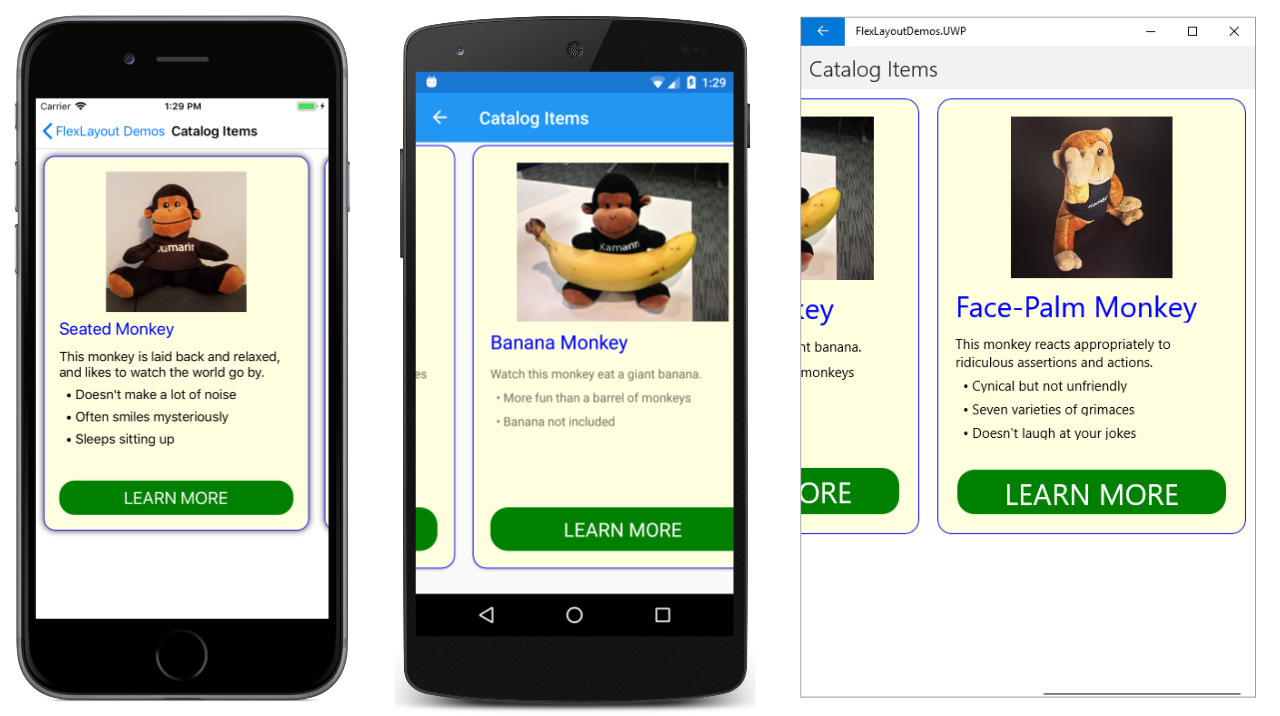 Here's that page running on iOS, Android, and the Universal Windows Platform: