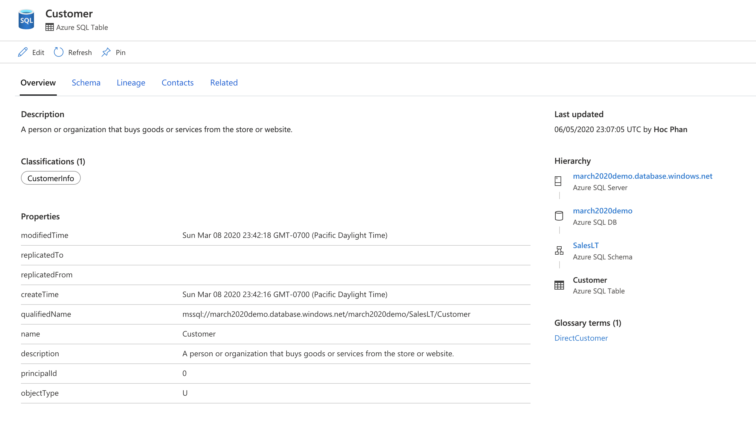 Search or browse Unified Catalog for the table asset that you're interested in. For example, Customer table.