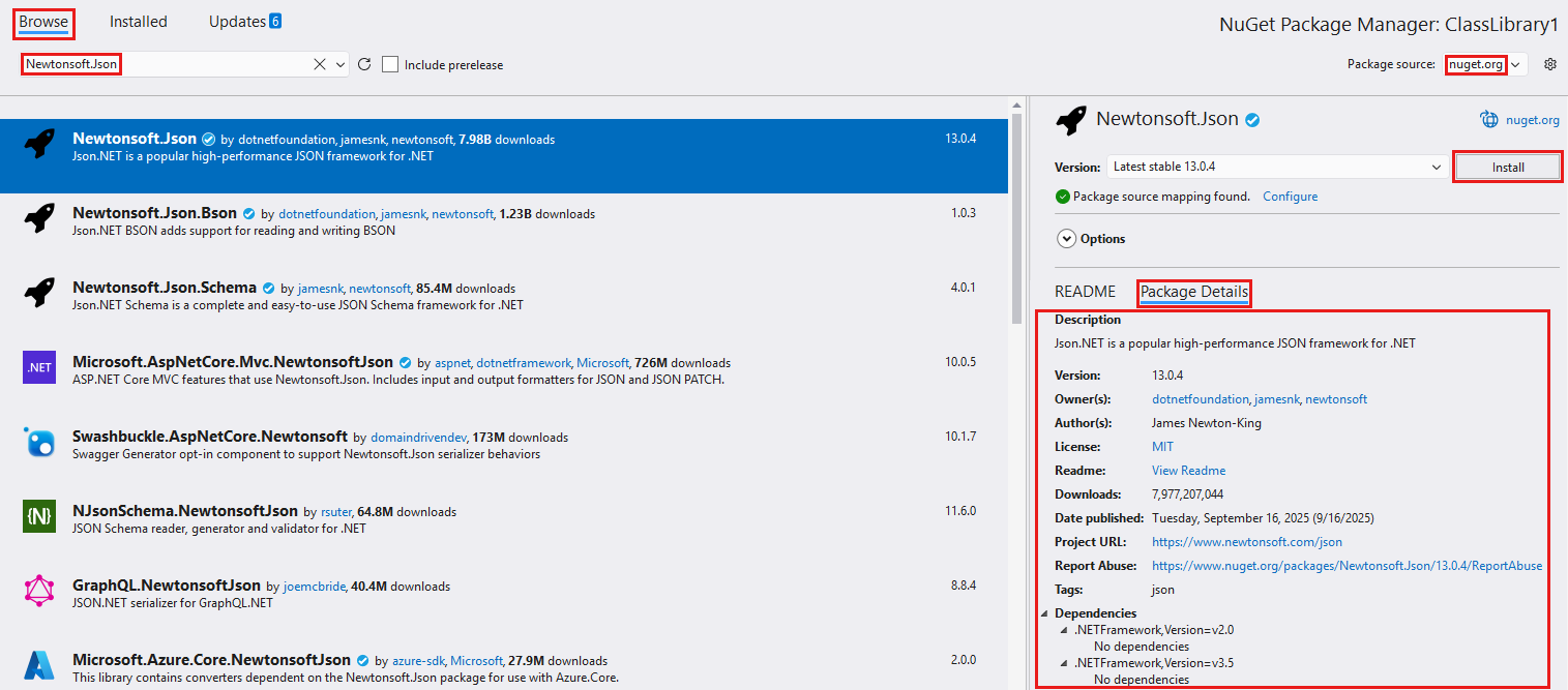 Para buscar e instalar un paquete NuGet mediante Visual Studio, siga estos pasos: