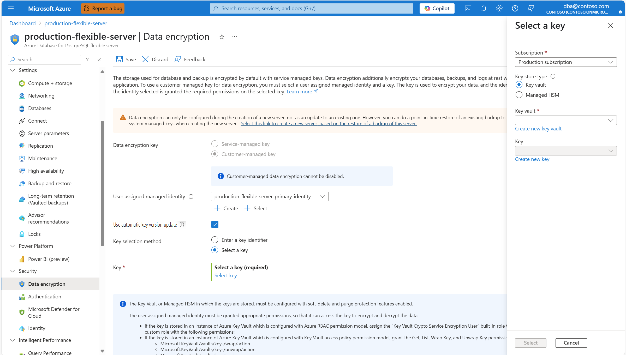 Debe actualizar las referencias que la instancia de servidor flexible de Azure Database for PostgreSQL tiene en una clave:
