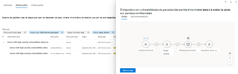 Haga clic en el botón Ver en el mapa para ver la ruta de acceso de ataque.