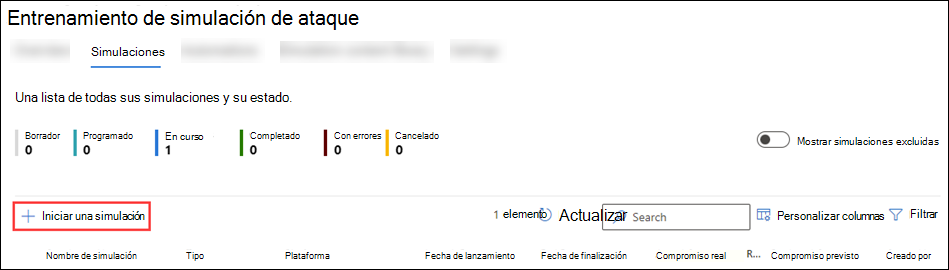 Para obtener información de introducción sobre Entrenamiento de simulación de ataque, consulte Introducción al uso de Entrenamiento de simulación de ataque.