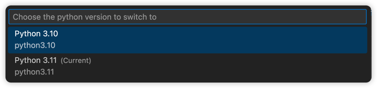 Encontrará la versión de Python en la esquina inferior derecha de la barra de estado. Si desea actualizar la versión de Python, puede seleccionar el número de versión en la barra de estado. Elija la versión de Python en la lista de versiones de Python disponibles. La versión de Python seleccionada se usa al ejecutar el cuaderno en VS Code.