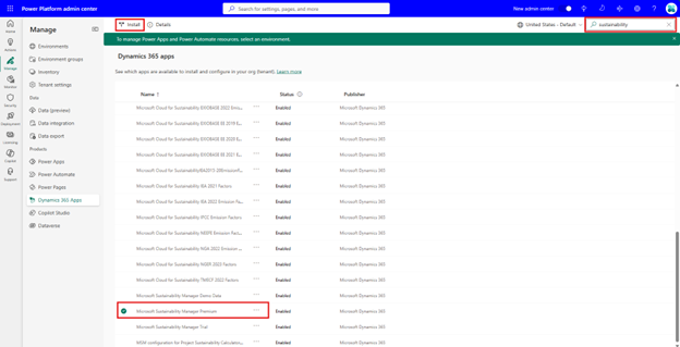 En este artículo se describe cómo implementar Microsoft Sustainability Manager mediante el Centro de administración de Power Platform.