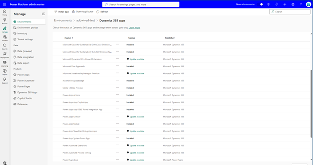 Seleccione Administrar y, a continuación, Dynamics 365 Aplicaciones.