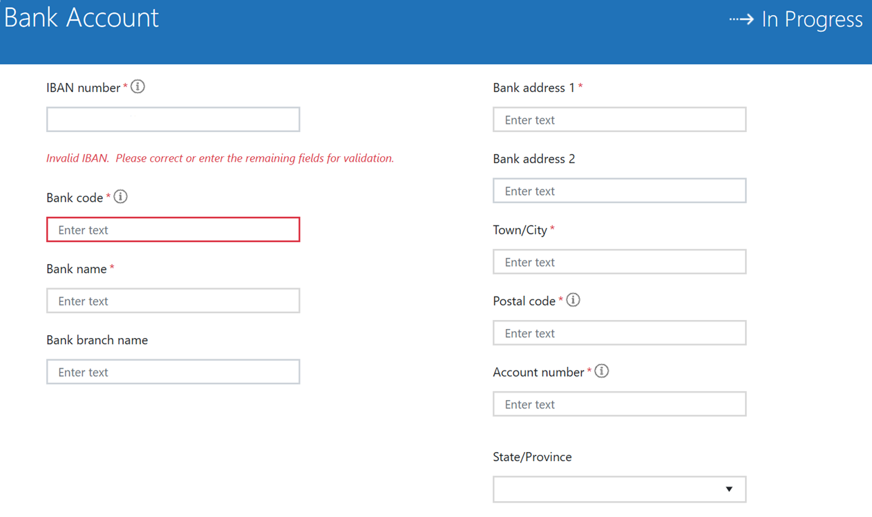 - Modifique la clave bancaria con un número ficticio (por ejemplo, 12345) y complete los detalles bancarios restantes.