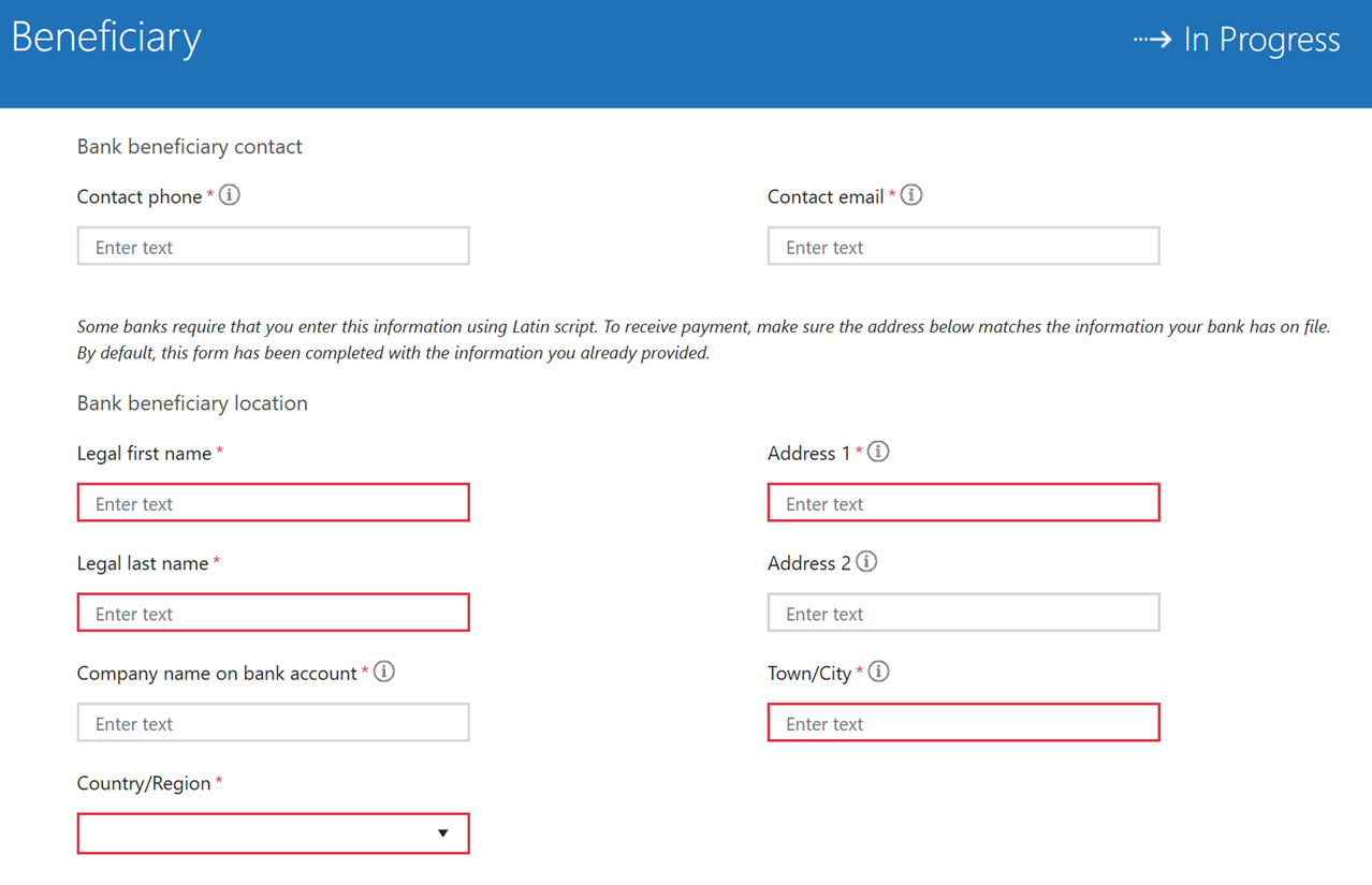 - Proporcione los detalles del beneficiario.