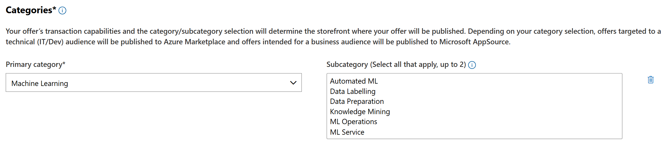 Para más información sobre las categorías y su impacto en la descripción, consulte la guía de categorías de Marketplace. Para obtener más información sobre cómo crear listados atractivos, consulte Procedimientos recomendados para marketing y enumeración de la oferta. También puede actualizar una oferta existente para incorporar estas categorías. Para obtener instrucciones sobre cómo actualizar una oferta existente, consulte Actualización de una oferta existente.
