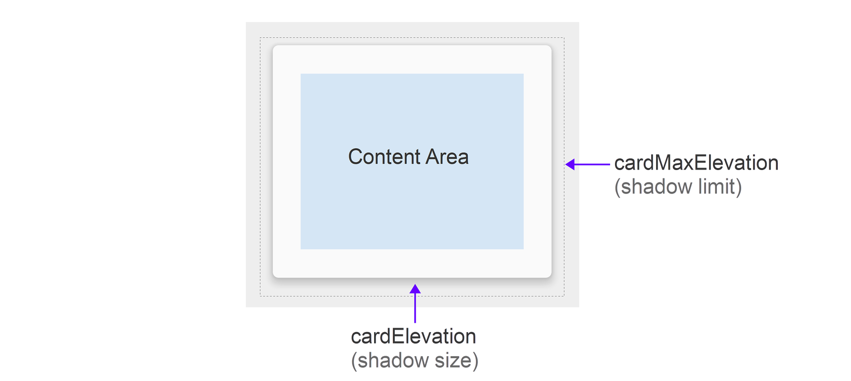El valor cardMaxElevation es útil para cuando la aplicación cambia la elevación dinámicamente: impide que la sombra se extienda más allá del límite que defina con este valor.