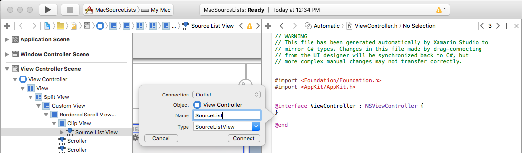Una lista de origen es un tipo especial de vista esquema utilizada para mostrar el origen de una acción, como la barra lateral en Finder o iTunes. A diferencia de las vistas de esquema, antes de definir nuestra lista de orígenes en el Interface Builder, vamos a crear las clases de respaldo en Xamarin.Mac.