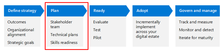 Para obtener más información del Cloud Adoption Framework, consulte Plan para la adopción de la nube.