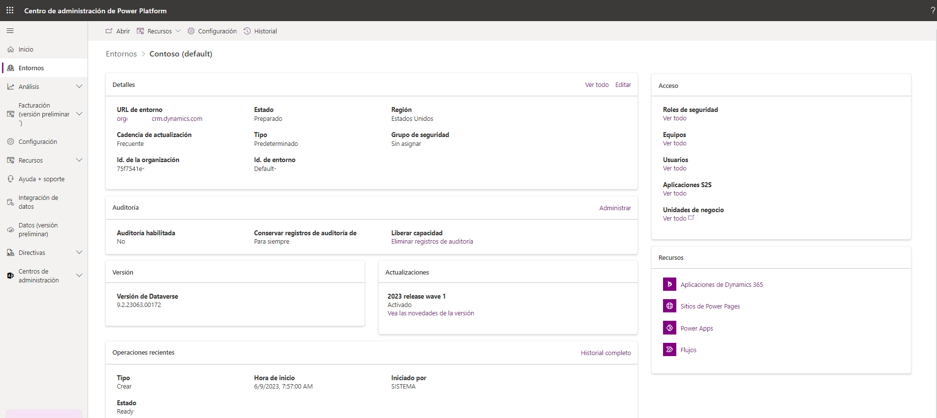 El Centro de administración de Power Platform le permite acceder rápidamente a cualquiera de los entornos que contenga Dataverse y revisarlos. Comprobemos ahora sus nuevos conocimientos.