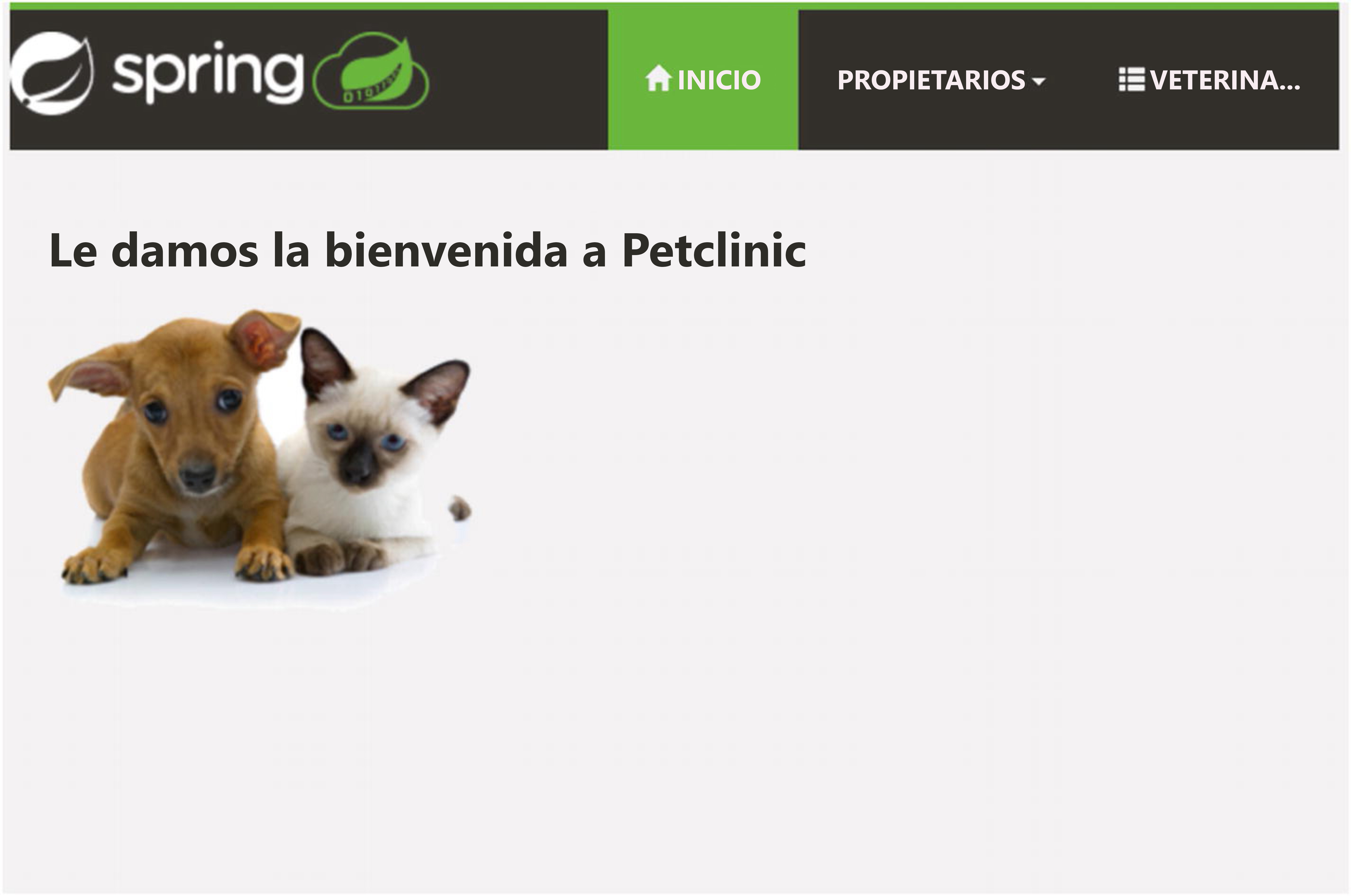 En un explorador web, navegue hasta nuestra dirección URL de api-gateway para abrir la aplicación de microservicio Pet Clinic.