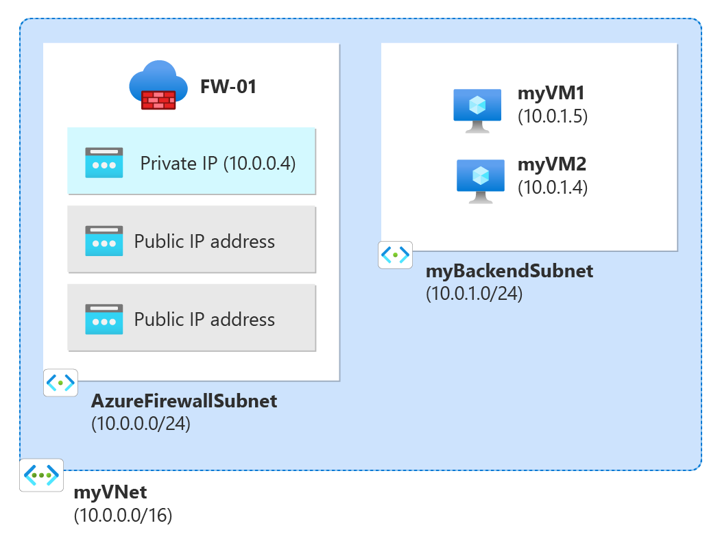 Další informace o službě Azure Firewall s několika veřejnými IP adresami najdete v tématu Nasazení služby Azure Firewall s několika veřejnými IP adresami pomocí Azure PowerShellu.