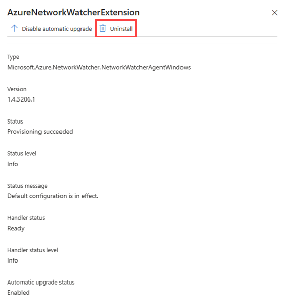 V seznamu rozšíření vyberte AzureNetworkWatcherExtension a pak vyberte Odinstalovat.