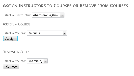 <h2>Assign Instructors to Courses or Remove from Courses</h2>