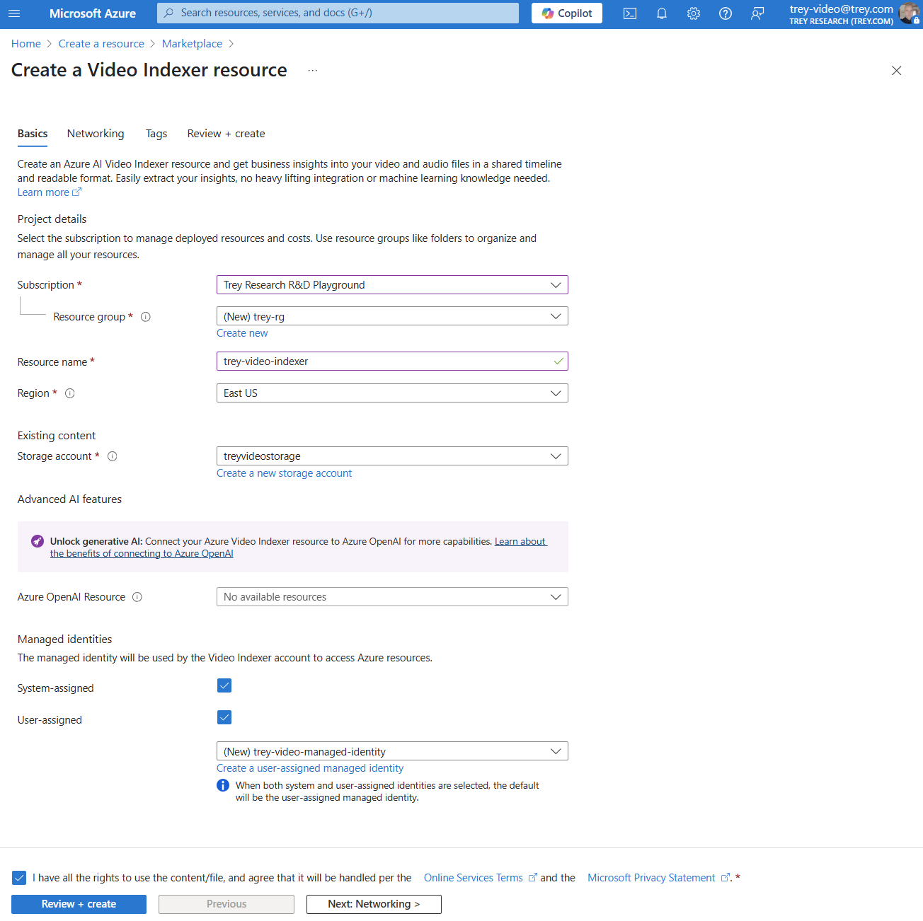 Možnost zkušebního účtu není dostupná pro cloud Azure Government. Další omezení služby Azure Government najdete v tématu Omezení Azure AI Video Indexeru ve službě Azure Government.