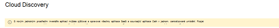 Na portálu Defender na adrese https://security.microsoft.compřejděte na Aplikace prostředků>. Nebo můžete přejít přímo na stránku Aplikace kliknutím na odkazy banneru na existujících stránkách zásad správného řízení Cloud Discovery a aplikací.