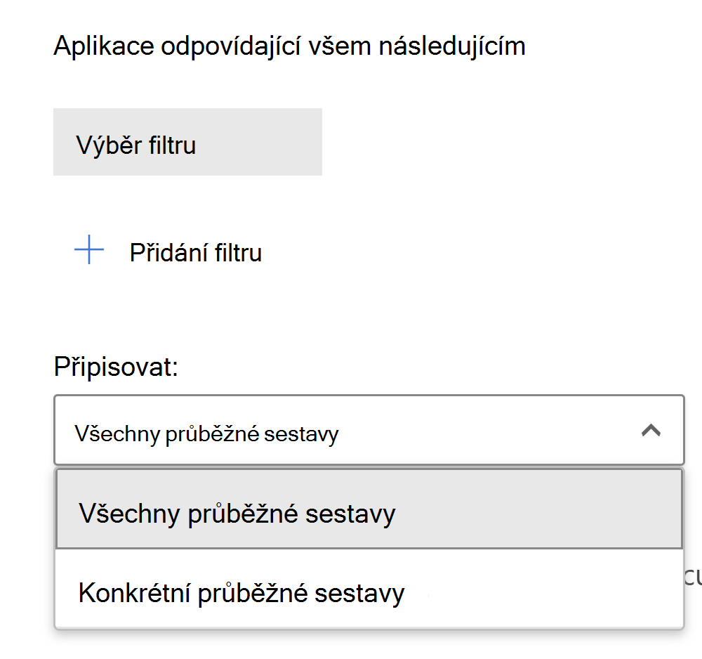 Pokud chcete nastavit, které zjištěné aplikace tuto zásadu aktivují, vyberte Přidat filtry.