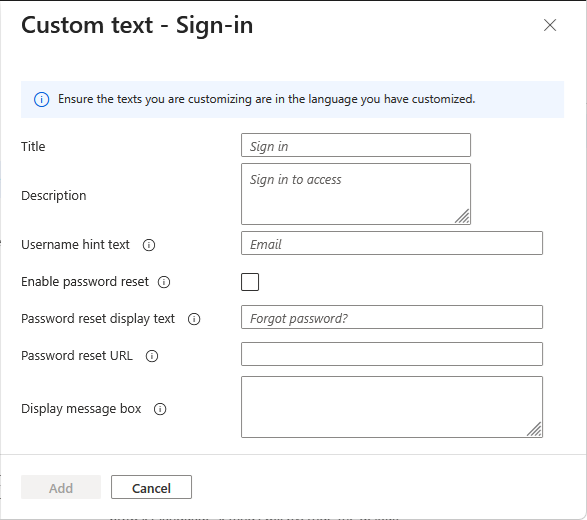 | Okno zprávy zobrazení přihlášení | Text, který můžete přidat pod pole uživatelského jména |