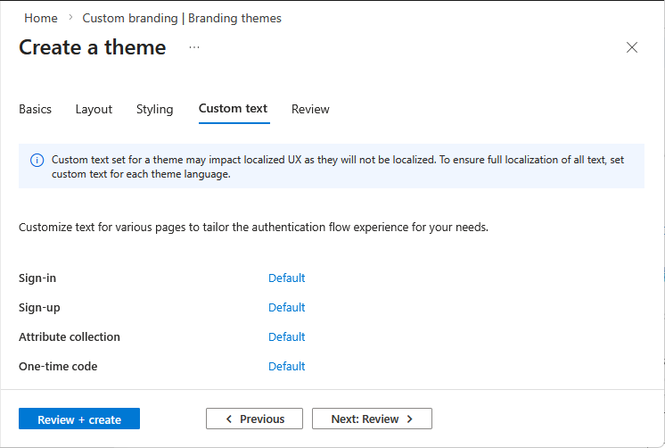 Vlastní text nastavený pro motiv může ovlivnit lokalizovanou uživatelskou zkušenost, protože nebude lokalizován. Pokud chcete zajistit úplnou lokalizaci veškerého textu, nastavte vlastní text pro každý jazyk motivu.