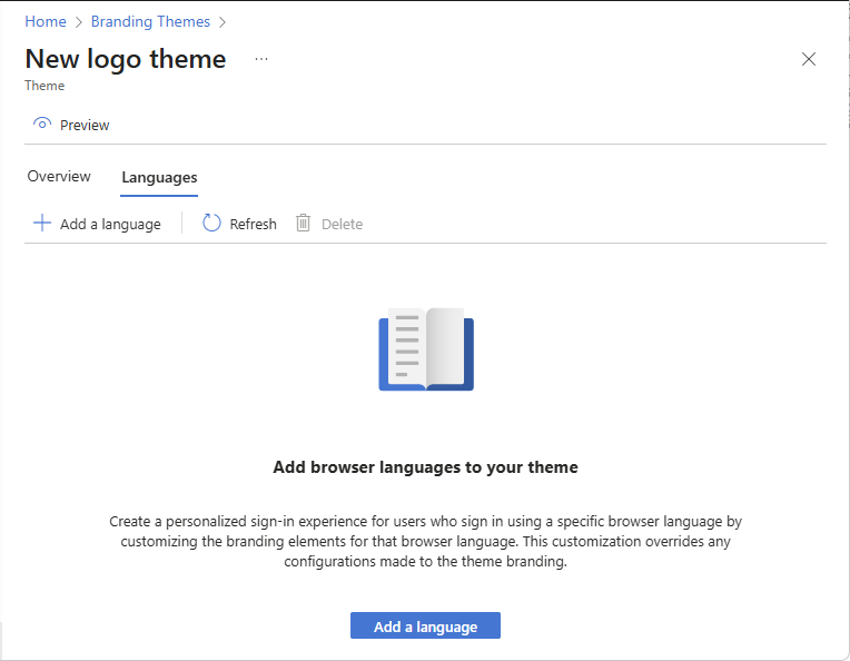 Na kartě Jazyky vyberte Přidat jazyk a upravte jazyk motivu.