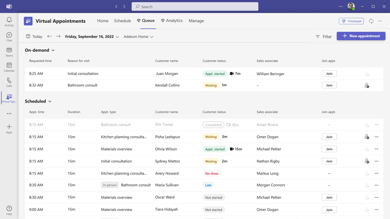 Virtuální události se konají prostřednictvím schůzek v Teams, které nabízejí robustní funkce videokonferencí. Lékař může například sdílet svou obrazovku a zkontrolovat výsledky testů s pacientem. Nebo může bankovní poradce požádat o elektronické podpisy na dokumentech, což jim umožní uzavřít transakce na dálku.