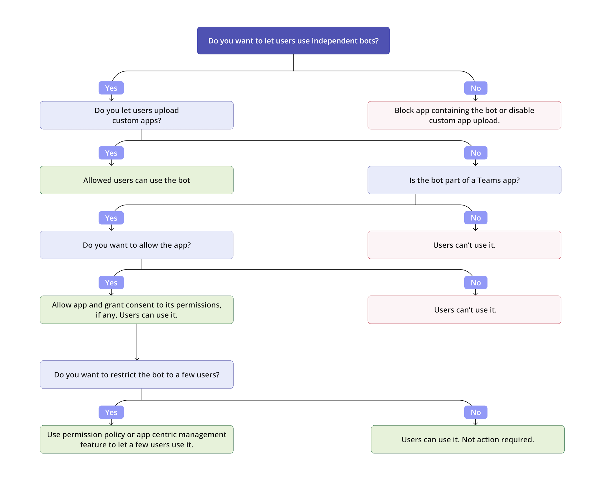 Teams supports the following bot scenarios based on the admin center settings: