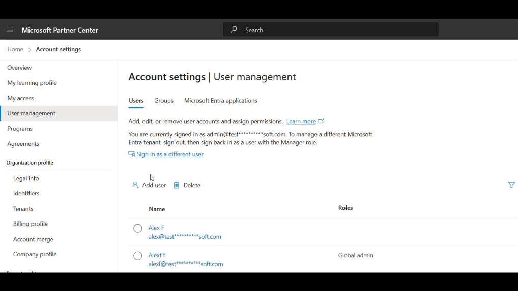 Krok 1: Vytvoření účtu Partnerského centra s rolemi Referenční seznamy