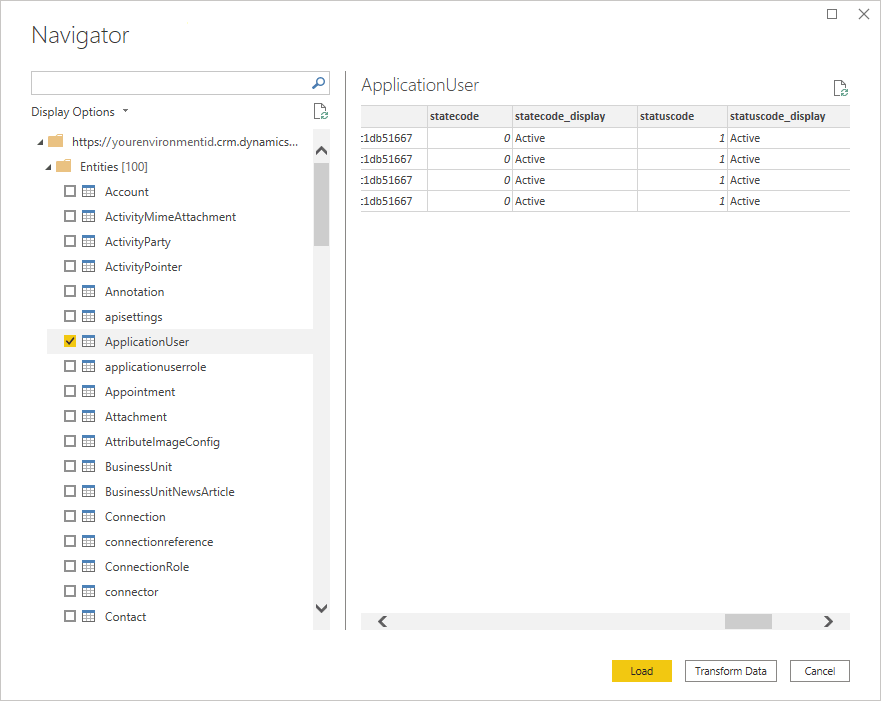 Pokud používáte Power BI Desktop a potřebujete použít port 5558, musíte v Power Query M vytvořit zdroj s adresou URL prostředí Dataverse, například yourenvironmentid.crm.dynamics.com,5558. Další informace: Definding adresy URL prostředí Dataverse