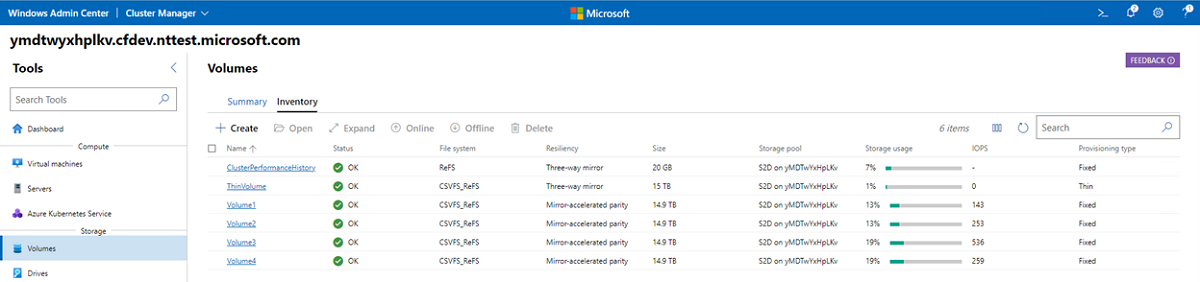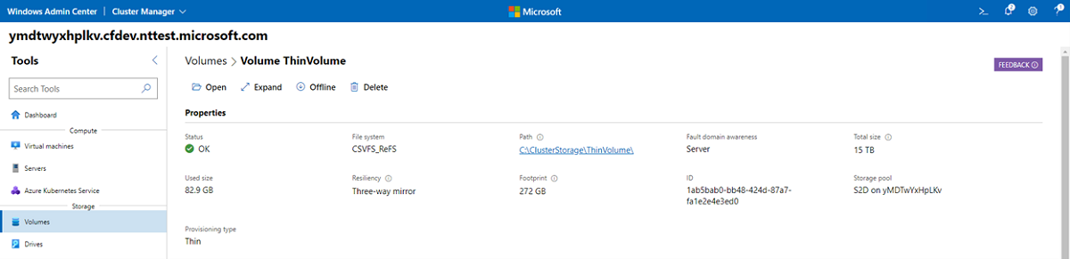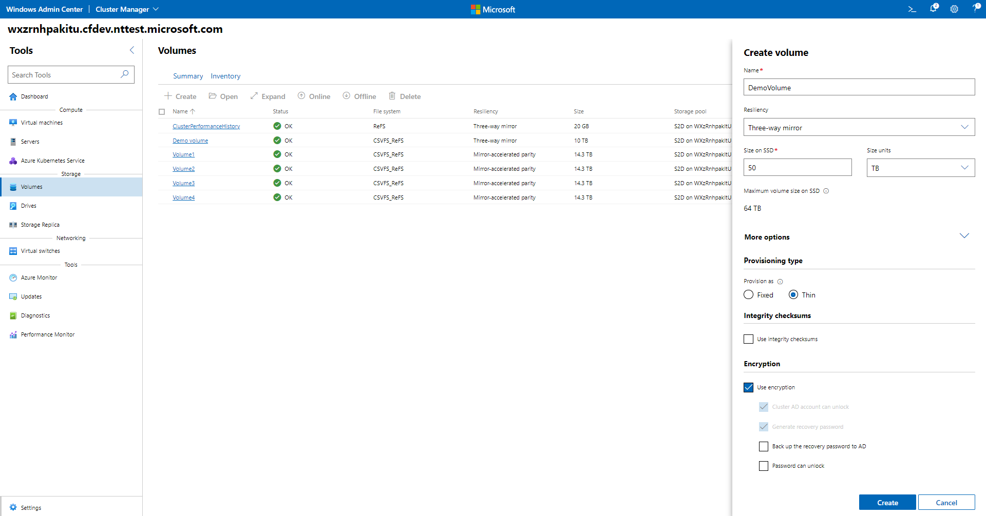 To create a thinly provisioned volume in Windows Admin Center: