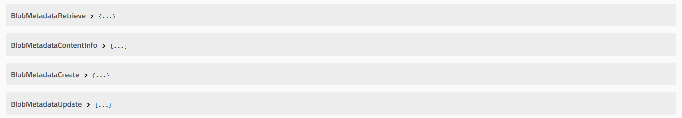 Metadata objektů blob JSON odpovídají následujícímu modelu: