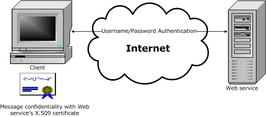 A common application scenario where the Web service client and the Web service communicate over the Internet.
